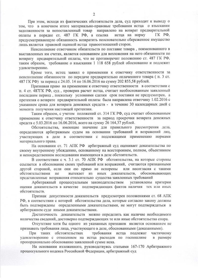 - сумма предоплаты — 1 118 658 руб., проценты за пользование чужими денежными средствами (в размере, определённом на дату вынесения решения), а также расходы по уплате государственной пошлины.