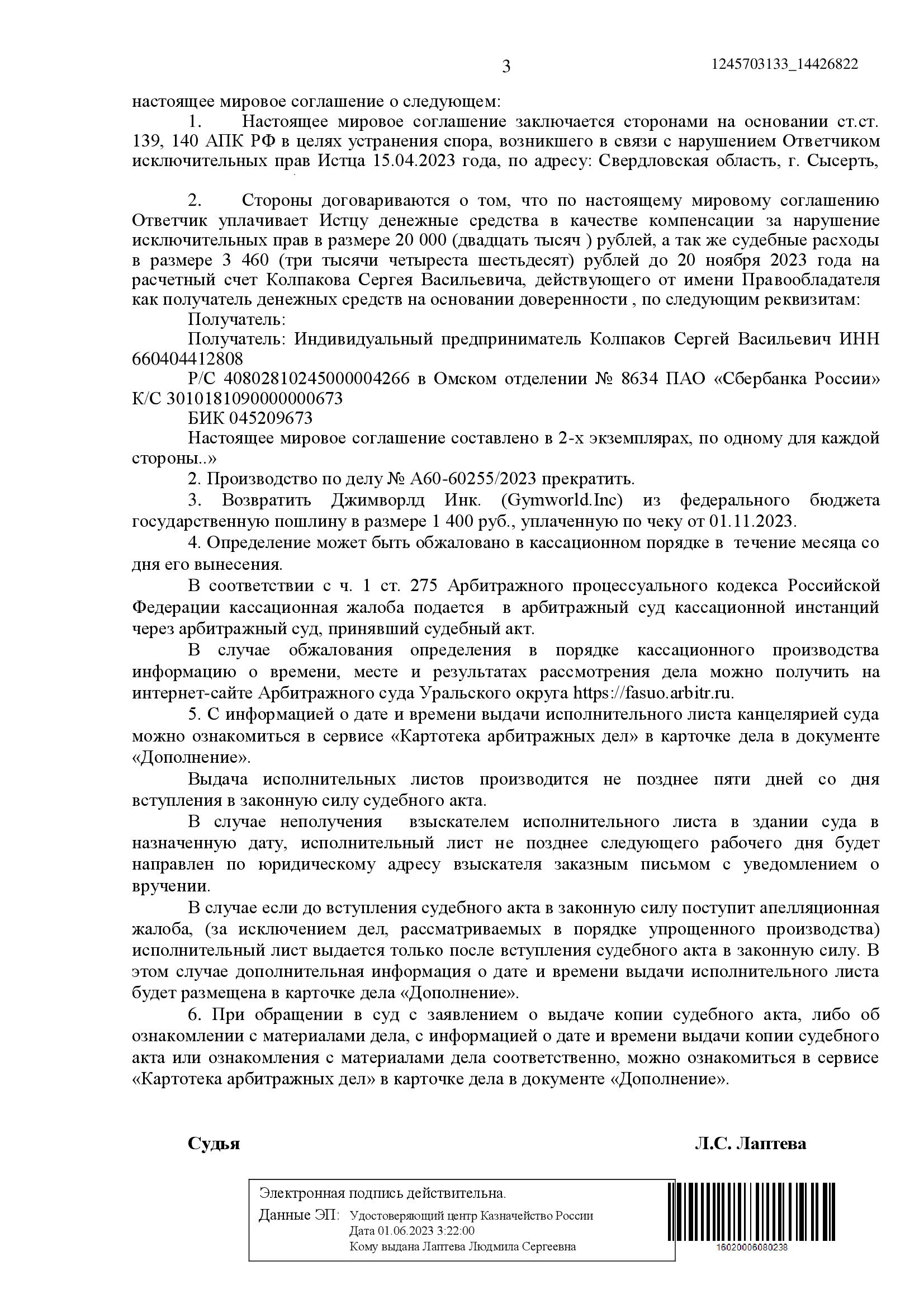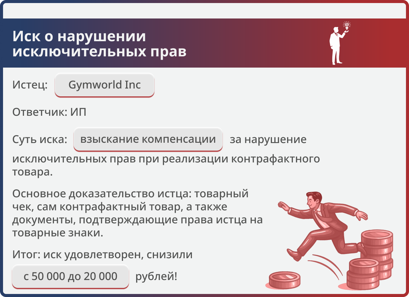 • Картинка Нарушение исключительных прав по иску Gymworld Inc