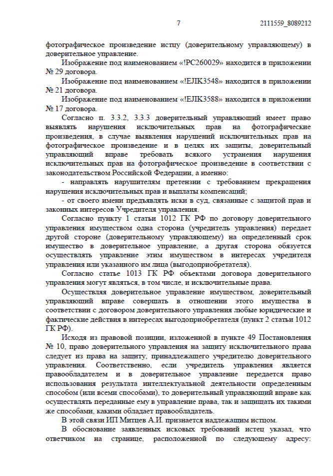 Мы ссылались на нормы статей 1229, 1252, 1270 и 1301 ГК РФ, подтвердив, что изображения использовались в коммерческих целях без согласия правообладателя.